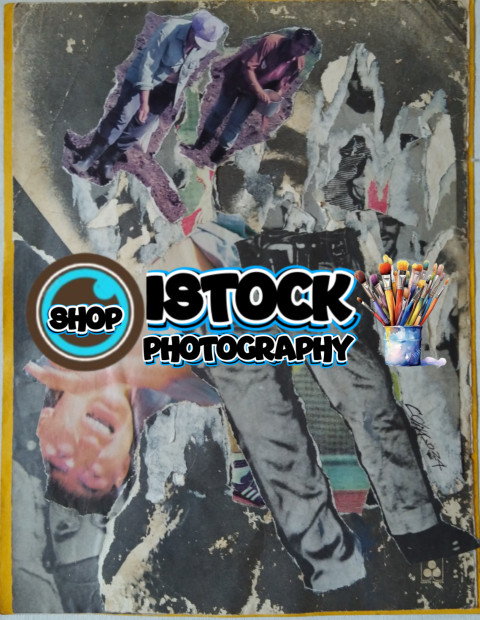 Cabeza al revés a la izquierda.piernad uniformadas a la drecha en blanco y negro.