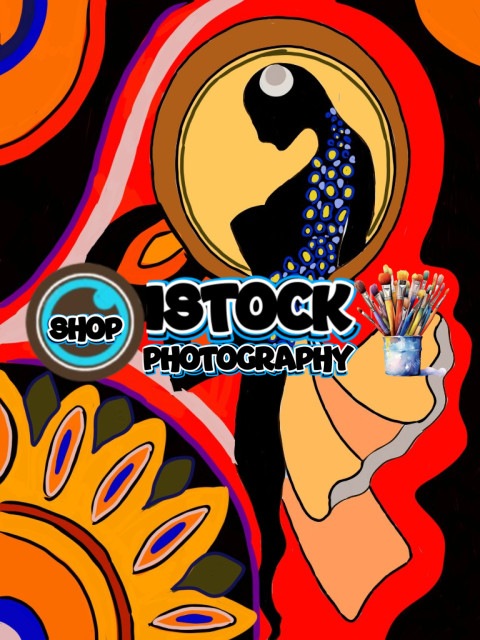 This vibrant abstract artwork celebrates feminine grace and inner strength. The central figure, adorned with a peacock-inspired