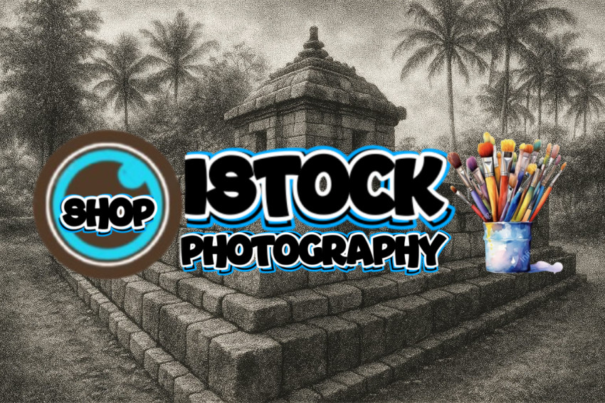 Klero Temple, Tengaran District, Semarang Regency, Central Java. Pointillism technique on paper