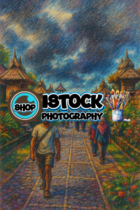 The village life of Panglipuran, Bali .Pencils colour
