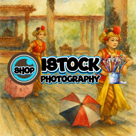 Two dancers are performing the traditional Javanese dance, the Bondan dance.